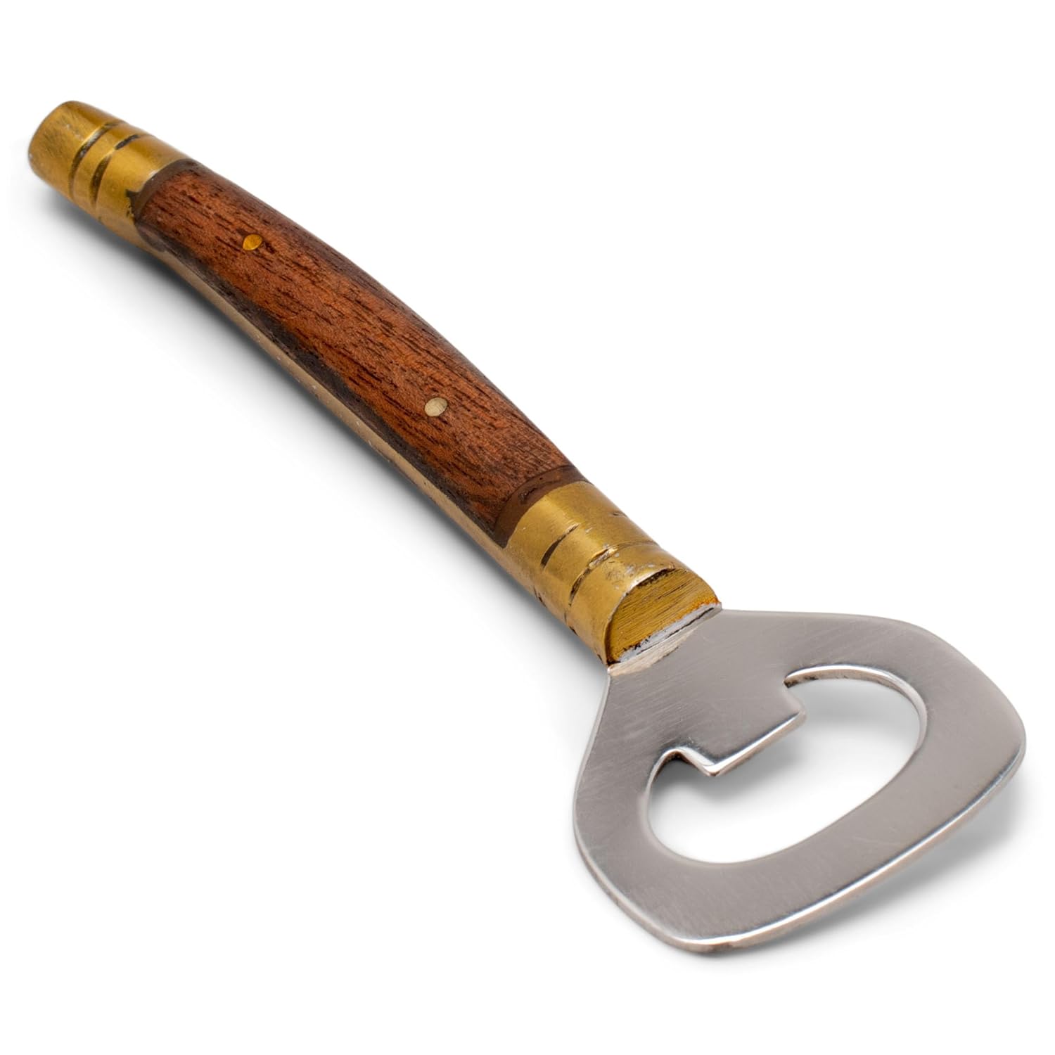 - Opener is made of metal with wood handle; Hand wash only